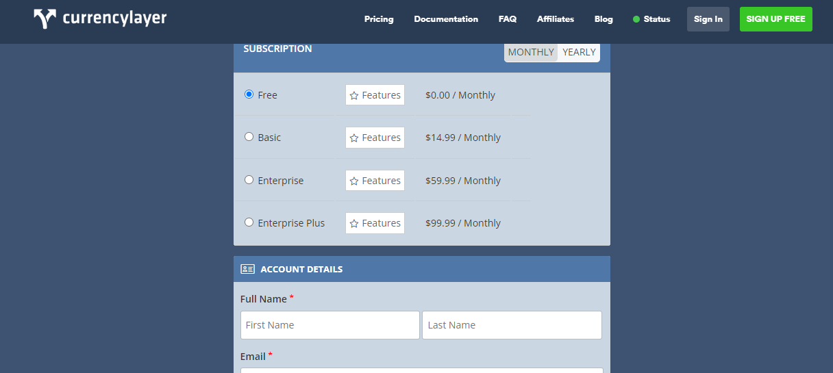 1) Sign Up Free for an account on Currencylayer’s official website: